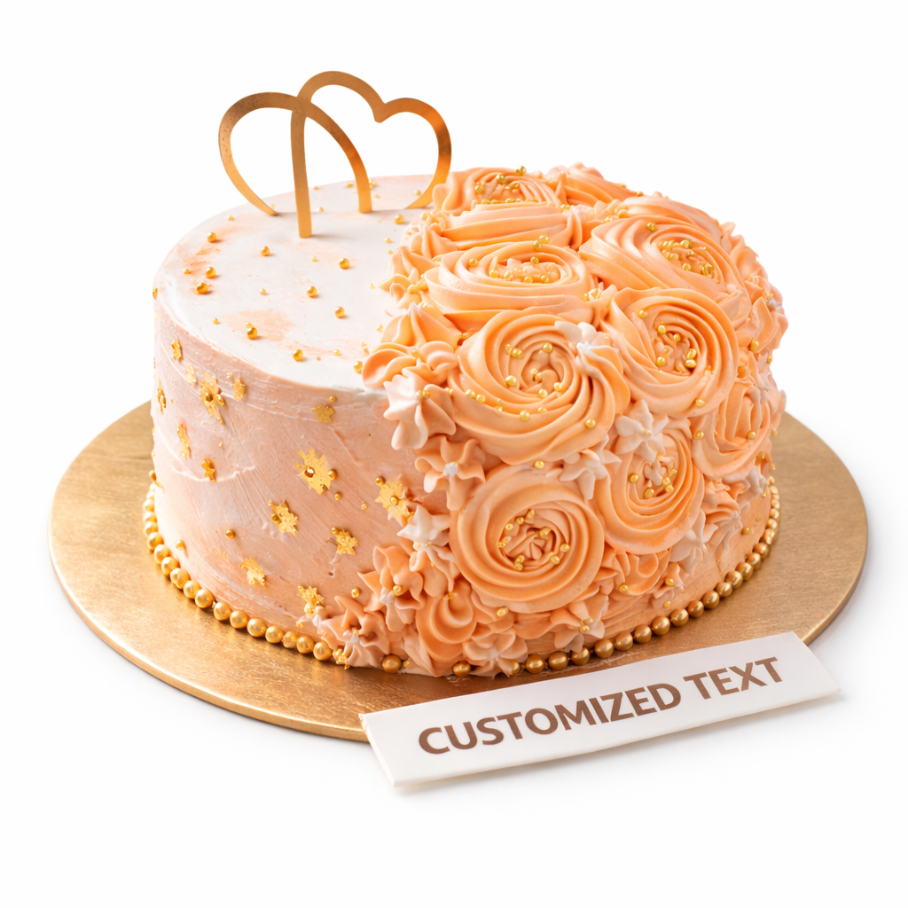 Be the first to review “Elegant Peach and Gold Decor Anniversary Cake”